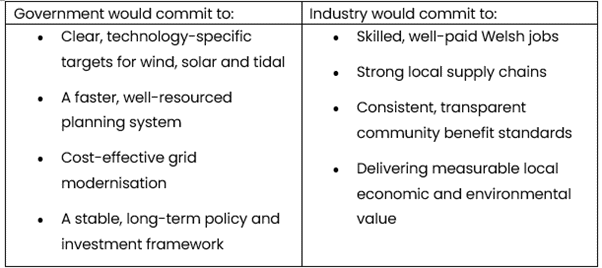 At the heart of the Call for Government is a proposed Cymru Clean Power Partnership - a two-way agreement between government and industry. Under the proposal: